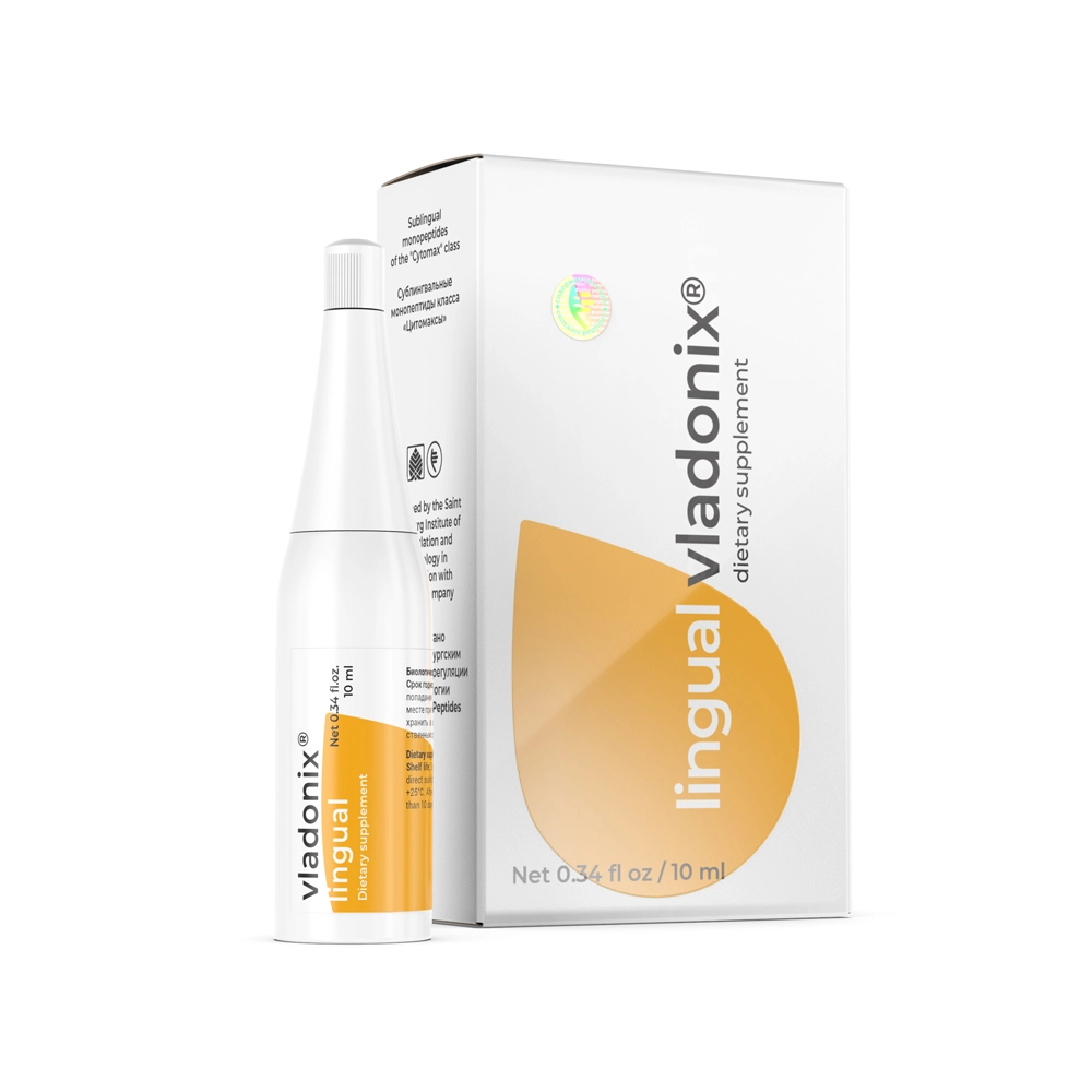 Схема приема: по 5-6 капель под язык 3-4 раза в день за 10-15 минут до еды. Продолжительность приема — 1 месяц. Для профилактики рекомендуется проводить курсы 2-3 раза в год, особенно перед началом эпидемического сезона. ![]() «Владоникс лингвал»— натуральный полипептидный комплекс, получаемый путем экстракции из тимуса молодых животных, адаптированный для сублингвального применения. Преимущества натуральных пептидов:«Владоникс» содержит весь спектр пептидов тимуса различной длины, что обеспечивает более широкое и пролонгированное действие. Короткие пептидные фрагменты молекулы «Владоникса» взаимодействуют с ДНК клеток, регулируя экспрессию генов и обеспечивая максимально физиологичный эффект. Преимущества натуральных пептидов:Пептиды тимуса нормализуют метаболизм в иммунных клетках, регулируют соотношение различных субпопуляций T-лимфоцитов (хелперы, киллеры, супрессоры), стимулируют выработку интерферонов и других защитных факторов. «Владоникс» восстанавливает нарушенный иммунный статус, повышает резистентность к инфекциям. Области применения: